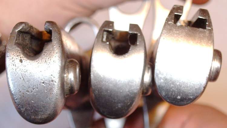 | unten: Ein Vergleich der Kastenfräsungen; von links nach rechts: 1. Mod. Weyersb., 2. Mod. Weyersb., 2. Mod. FMAP | ||