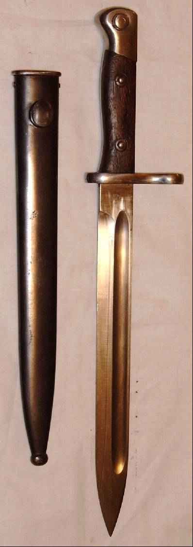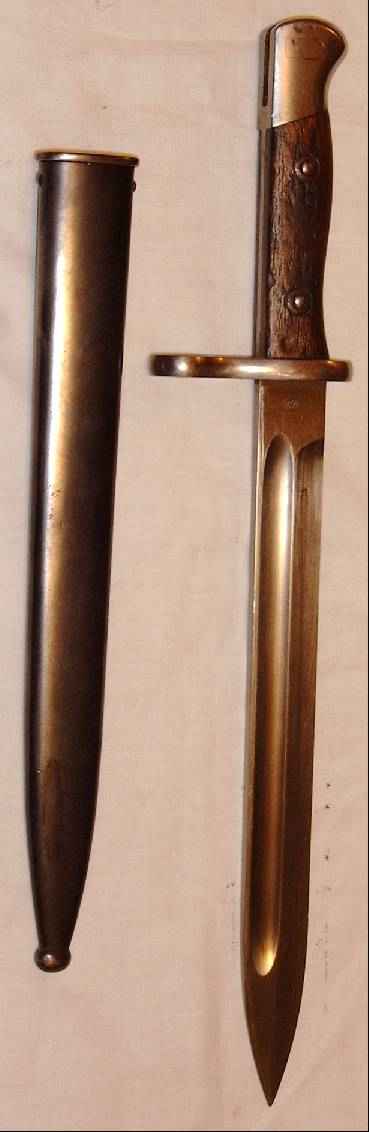 Dieses Bajonett trägt keine Seriennummer, und eine etwas andere Stempelung als das Stück von Weyersberg: Hier das typische chilenische Wappen. |