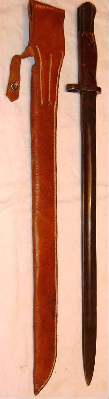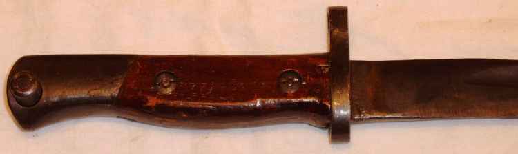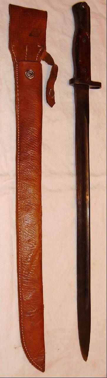| Dieses Bajonett besteht aus einem neu gefertigten Gefäß für eine Bajonetthalterung System 98 und eine daran grob angeschweißte Klinge eines britischen 1907-Bajonettes. Die Herkunft der Klinge kann jedoch nur anhand der Klingenform ermittelt werden, Stempel sind nicht mehr erhalten.