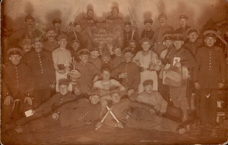 Als Helmnummern sind '29' zu erkennen, was auf das Posener Pionierbataillon Nr. 29 deuten könnte, wobei auf der Tafel allerdings von 'Berlinern' die Rede ist.  |