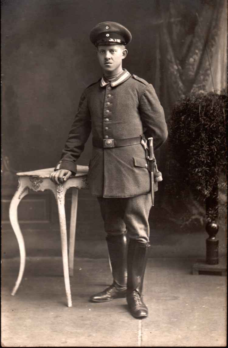 Der Soldat auf diesem Bild ist ein Unteroffizier und führt ein Seitengewehr KS 98.