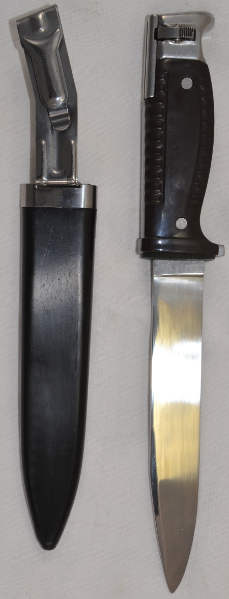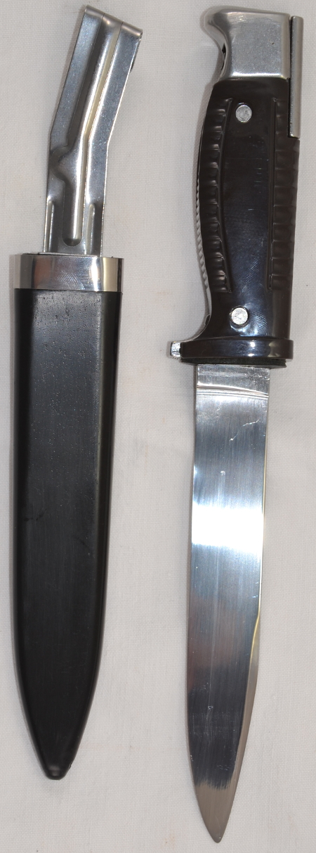 Die Klinge ist stumpf. Das Seitengewehr entspricht der letzten und häufigsten der 3 existierenden Varianten, allerdings nur in der allgemeinen Formgebung. Die verwendeten Materialien sind deutlich einfacher als beim Original und es fehlen jegliche Stempel.  |