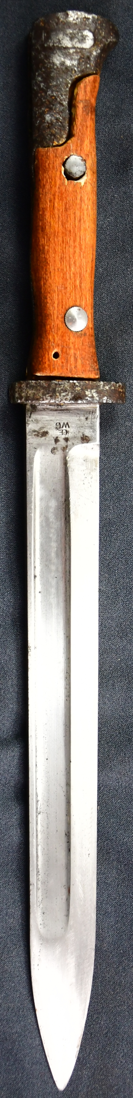 Das vorliegende Bajonett trägt eine Klinge, die von der österreichischen Waffenfabriks-Gesellschaft OEWG für Rumänien als M1893 gefertigt wurde.