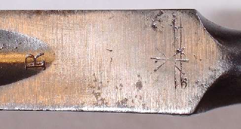 | unten: Die Reste der alten Klingenstempel sowie das neue "R" | ||