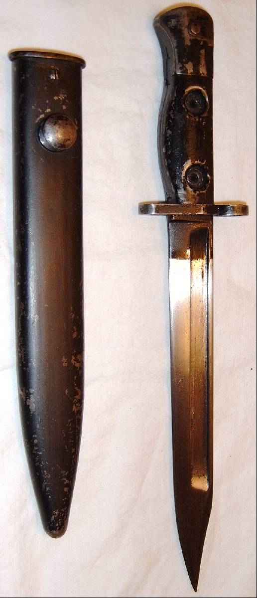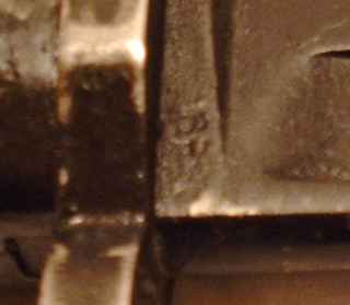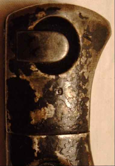 | Dieses Bajonett wurde evtl.1959 gefertigt, die Markierung könnte aber genausogut 63 oder 68 heißen, sie ist sehr schlecht lesbar - wenn es denn überhaupt eine Jahreszahl ist!