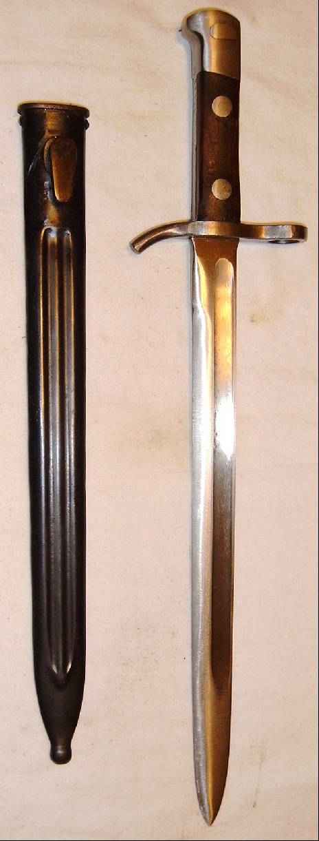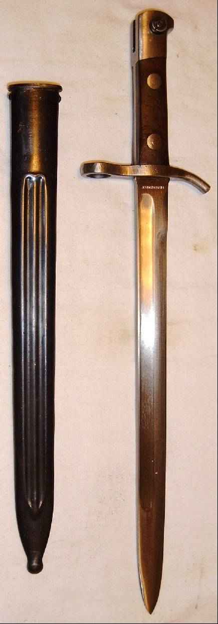 | Dieses Bajonett wurde bei Hackman gefertigt. Es trägt ein "S" in der Parierstange und ein "S" vor der Seriennummer, so daß es sich recht sicher um ein M 28, also ein Heimwehr-Modell handeln dürfte.
