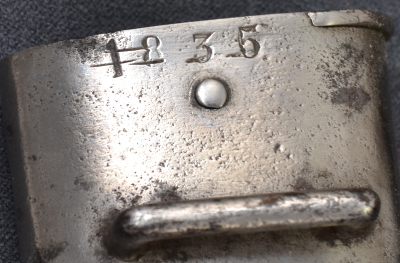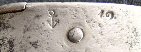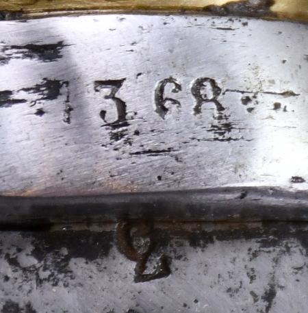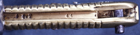 | unten: Die Parierstange mit dem Nummernstempel und ein unbekannter Stempel in der Klinge | ||