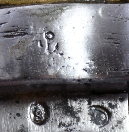 | unten: Die Parierstange mit dem Ankerstempel und Abnahmestempel in der Klinge | ||