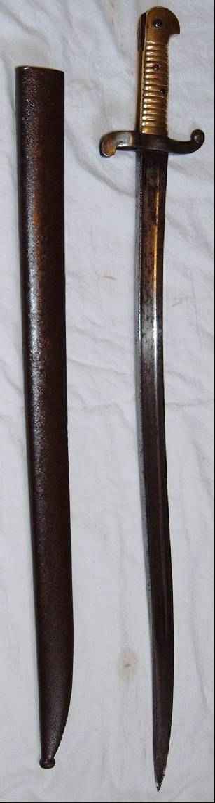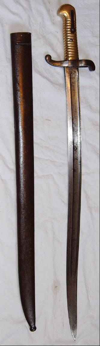 | Das vorliegende Stück wurde 1856 in Mutzig hergestellt, und trägt auf der Parierstange ein "M", was bedeutet, daß es für die Verwendung mit dem Mousqueton vorgesehen war, nicht für den Carabine ("C"). Deshalb hat das vorliegende Stück auch eine Mündungsring von 22mm Innendurchmesser (statt 23mm beim Carabin).