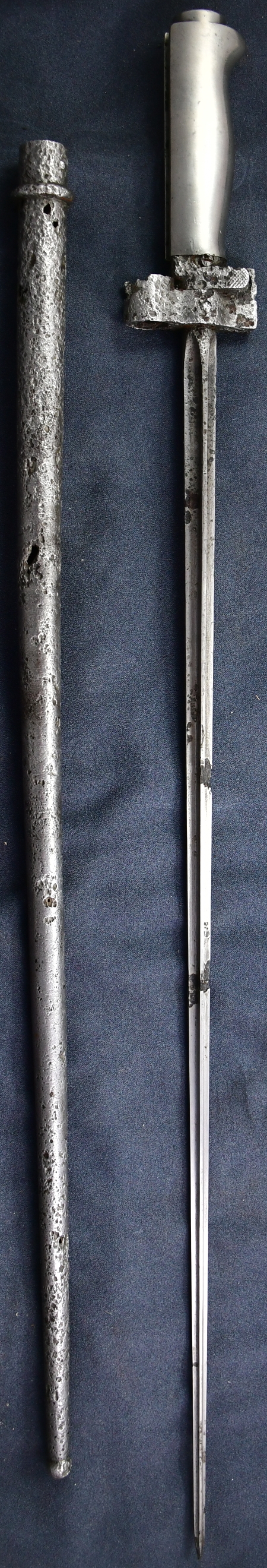 Das Bajonett ist ein relativ gut erhaltener Bodenfund, das Präfix ist unleserlich.