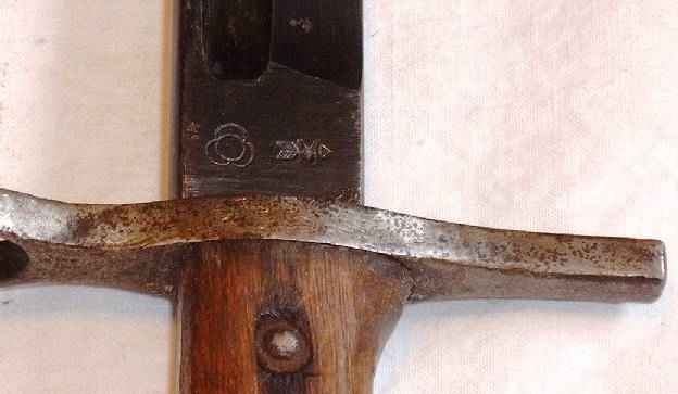 | unten: Die Griffbefestigung, das Herstellerlogo sowie Form der Parierstange | |