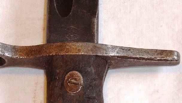 | unten: Die Griffbefestigung, das Herstellerlogo sowie Form der Parierstange | |