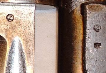 | unten: Z im Kreis als Zeichen der tschechischen Produktion für den Export, im Tragehaken wieder ein "CM"-Stempel (M im C). | ||