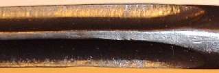 Allerdings ist die Klinge bereits sehr rauh gefertigt, es ist also wohl eine Kriegsproduktion. Die Herstellermarke ist leider nicht erkennbar. |