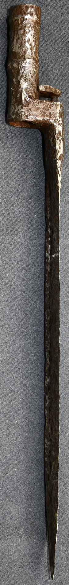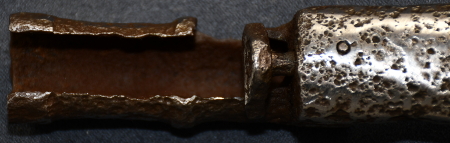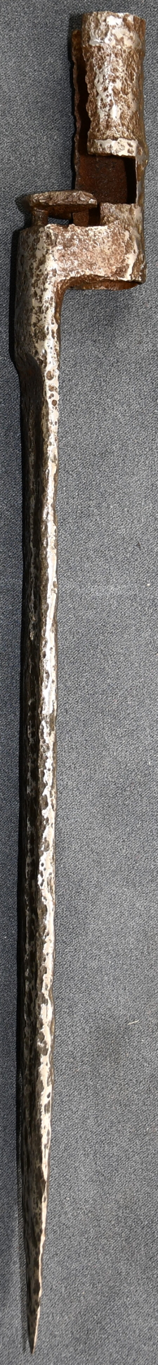 Beim vorliegenden Stück wurde die Klinge eines Tokarew SVT40-Bajonettes verwendet. Diese Stücke sind quasi nur als Bodenfund (in unterschiedlicher Erhaltung) zu finden. |