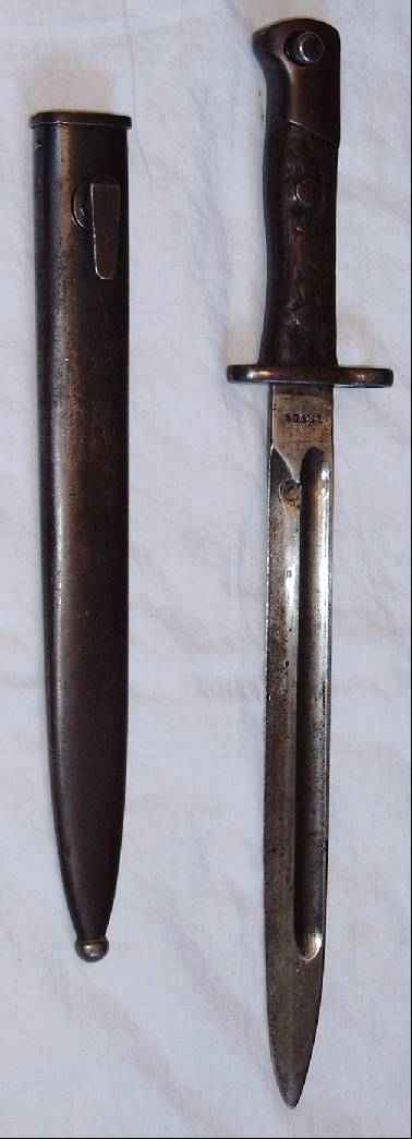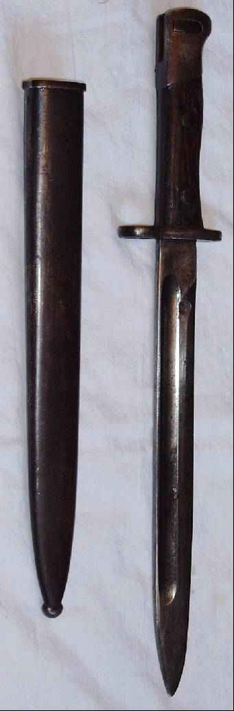 | Dieses Bajonett ist identisch mit dem ersten hier vorgestellten M 1902, außer, daß hier die Griffschalen mit Nieten befestigt sind, und nicht mit Schrauben.