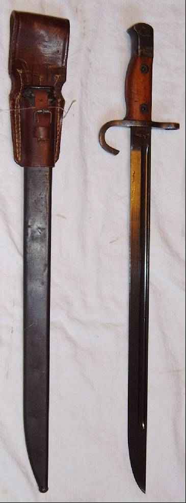 Das vorliegende Bajonett ist eine entfeinerte, spätere Variante des Arisaka-Bajonettes, mit einfacherem Parierhaken und abgeflachtem Knauf mit "Schnabel". Die Griffschalen berühren sich an der Vorderseite, sind an dieser Stelle quasi "geschlossen" .