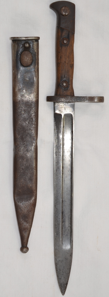 | Dieses Bajonett war vor der Anbringung einer neuen Parierstange für das türkische Gewehr M35 ein rumänisches Bajonett M1903, in Österreich bei OEWG gefertigt.