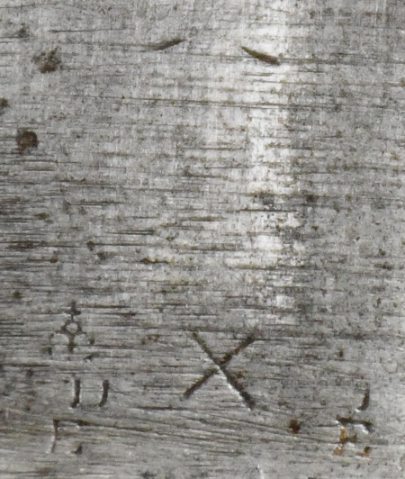 | unten: Die Reste der Stempel beider Seiten der Klinge | ||
