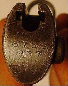 | unten: Die Herstellermarke sowie auf dem Tragehaken der Sonnenstempel, die Seriennummer und die Modellbezeichnung | ||
