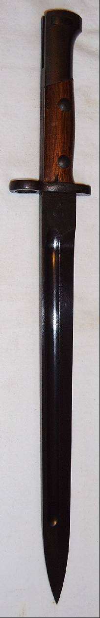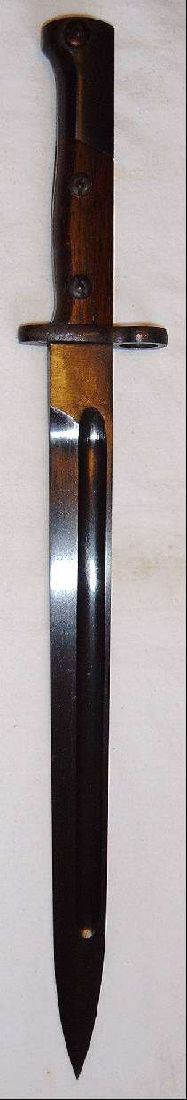 Der Durchmesser des Mündungsringes ist 15,5mm, das Gefäß hat einen TO-Kasten. In welches Land dieses Bajonett exportiert wurde ist nicht bekannt. Markierungen sind keine angebracht, die Scheide fehlt. |